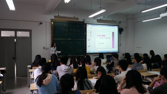 江藤教授在讲座中结合图片及影像,从电影发源期的19世纪初开始讲起,一直追溯到现代社会,生动形象又深入浅出地向同学们介绍了大家耳熟能详的漫画以及动漫。讲座受到了热烈欢迎,一百多座位的教室座无虚席,更有许多同学宁可站着也要听完全场,足见江藤教授的魅力之大。