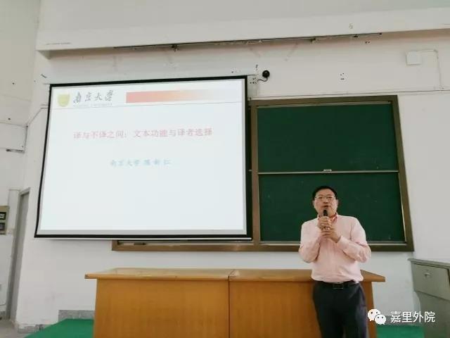 5月24日下午,南京大学博士生导师陈新仁教授应邀来到嘉兴学院,为外国语学院的师生带来了一场题为《译与不译之间:文本功能与译者选择》的专题学术讲座。陈教授在语用学理论和应用、翻译、外语教育、语言政策与语言规划等领域均有着极为深厚的学术造诣,近年来出版各类著作18部,在国内外学术期刊发表高水平学术论文140余篇,主持完成国家社科基金项目2项,可谓成绩斐然。