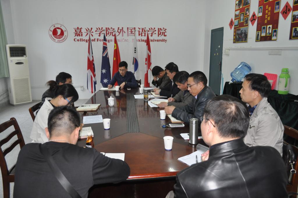 3月27日下午,胡俊云副校长前来外国语学院,就外国语言文学学科建设与唐艳芳院长、喻锋平副院长、郭永恩副院长以及十多名学院科研学术骨干进行了座谈。