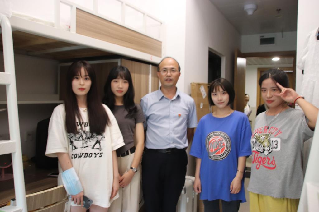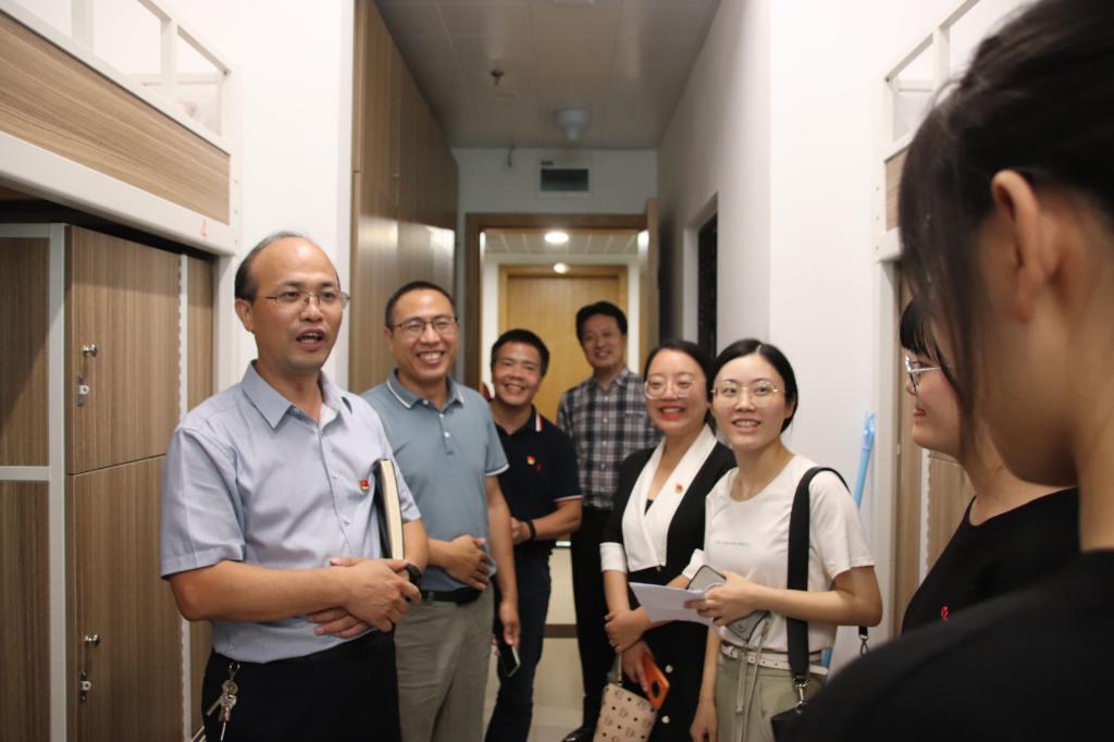 9月9日下午,校党委委员、副校长杨培强在外国语学院党政领导班子和学工办老师的陪同下走访了新生宿舍,为2021级新生送去温暖的问候与祝福。