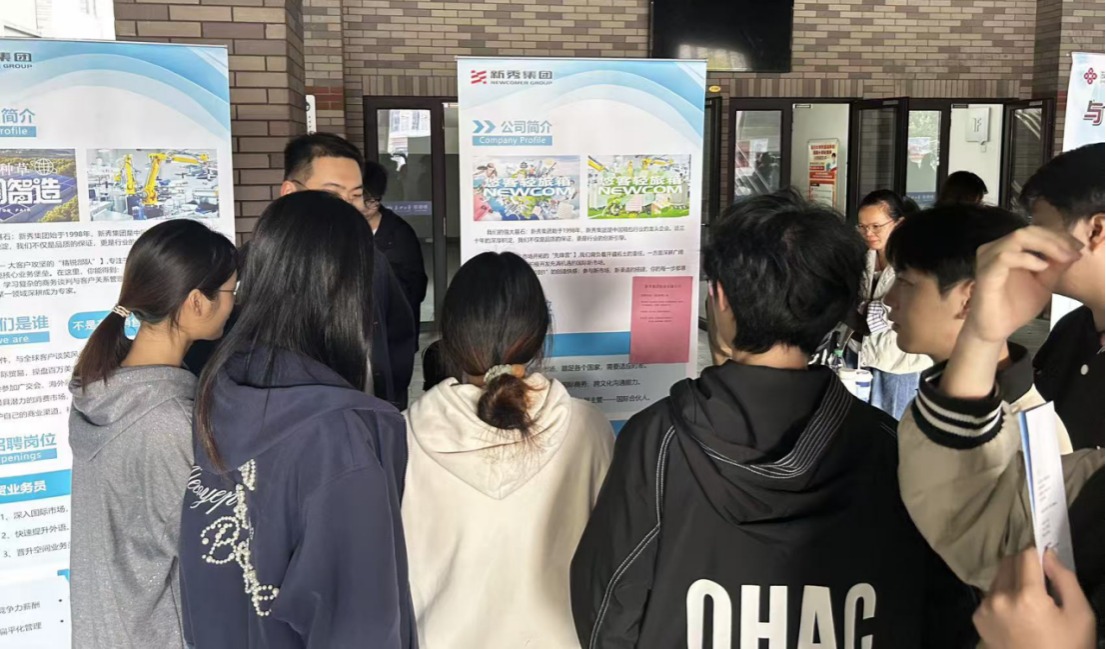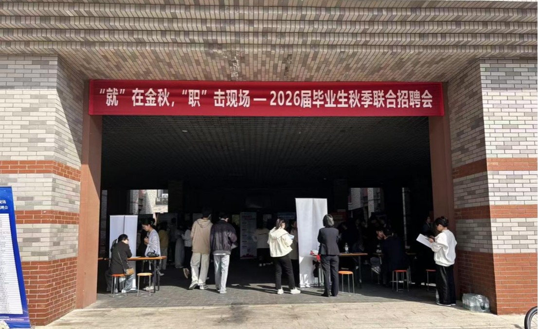 10月23日下午,外国语学院携手经济学院在梁林校区铭德楼一楼联合举办“就”在金秋,“职”击现场——2026届毕业生秋季联合招聘会。