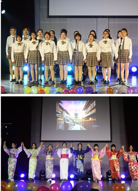 此次外语风采系列展示分为三个篇章。篇章一,徐欢同学的日语朗诵《風景開眼》(ふうけいかいがん)。外院表演队演绎莎翁笔下经典爱情故事《罗密欧与朱丽叶》,他们饱含深情的演绎,诠释了他们心中这段美好的爱情故事。外国语学院的老师们带来《外文歌曲串烧》,分别展示了英、日、法、韩歌曲的无穷魅力,充满活力的表演引得台下呼声连连。接下来是两位女生带来歌曲《我要你》,迷人的歌声与月色同样撩人。歌舞同行,在动人的歌声之后,是优雅的舞蹈同行。魏诗浓同学带来的中国传统舞蹈《丽人行》,让我们近距离的感受中国传统文化之美。七位同学带来日剧play《一公升的眼泪》,教会我们即使人生充满坎坷,也要热爱生活。篇章二,日语162班全体同学带来的日语版《那些年》,我们可能会在四年的大学生活中错过许多,但希望没有错过彼此。之后,金航婷同学为我们展示她的职规作品《红船先锋行—我的“红色”双语讲解之路》,优秀的学姐是我们学习的榜样。日语181班带来的日语趣味歌舞表演《Tokyo Bon》,通过唱歌、跳舞来享受学习,是一种很好的学习方法。日语外教老师们为我们带来《それが大事》,语言虽不同,但同样传达出对生活的热爱与激情,这就是歌曲的魅力!篇章三,五位外院学子带来乐队表演《Radioactive》&《Creep》生活虽充满挫折与坎坷,但仍保持积极的态度,现场洋溢着青春气息。萧楚炘同学的英语朗诵《Crossing the river by feeling for the stones》,让我们对流利纯正的英语口语有了更直面的了解与赞叹。最后,是最令人期待的模特秀,热烈的气氛将整场晚会推向了最高潮。