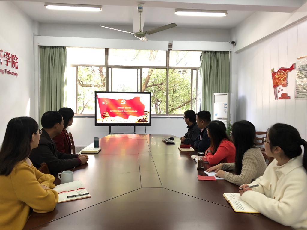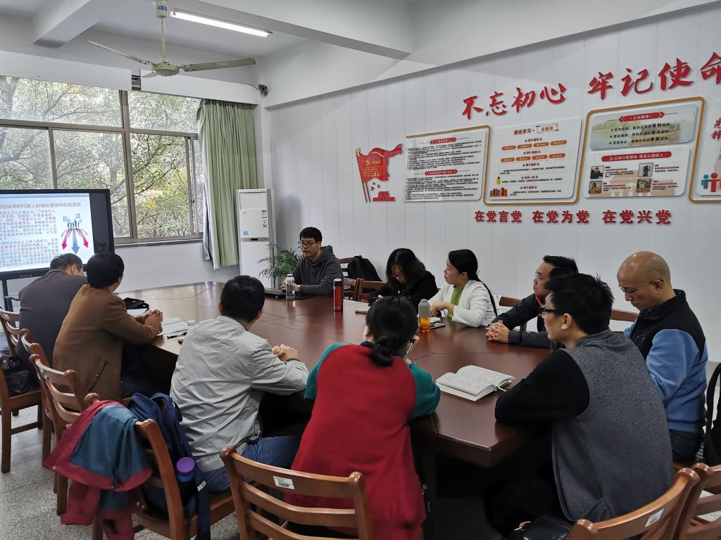 10月31日中午,教工第一党支部党员听取了支部书记丁建良的党课——坚定不移地推进全面从严治党。丁建良重点从什么是全面从严治党、为什么要全面从严治党、党的十八大以来如何全面从严治党、党的十九大以后全面从严治党新部署四方面进行了阐述。丁建良说,中国共产党的历史就是一部从严治党史,党坚持以零容忍的态度惩治腐败,全面从严治党永远在路上。他要求支部全体党员时刻牢记党员身份,遵守党纪党规和法律法规,努力营造风清气正的教书育人环境。