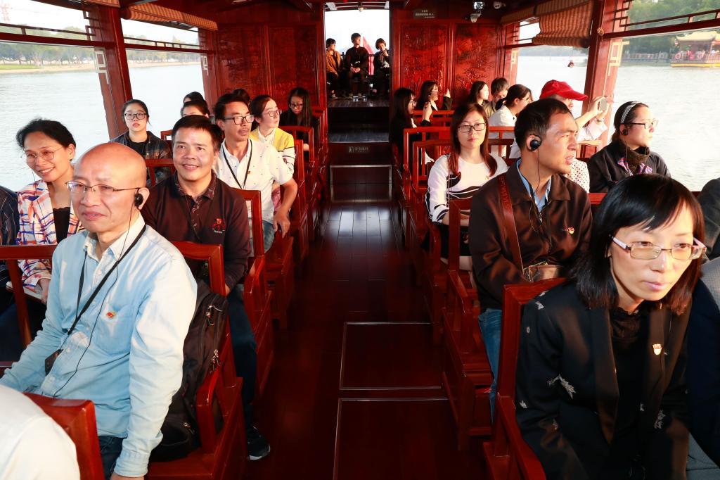 10月24日下午,由外国语学院党委书记陶丹玉和院长唐艳芳带队,全院师生党员集体到南湖红船边开展主题教育“六个一”活动。党员们沿着九十八年前中共一大代表们的历史足迹,重走一大路,感悟“红船精神”,坚定理想信念,凝聚奋进力量。