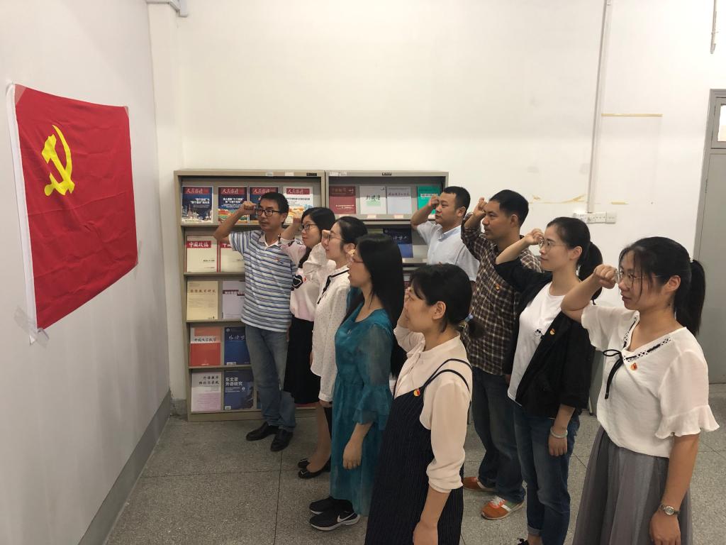 2019年10月11日下午,外国语学院第三教工支部在外语楼204会议室开展“六个一”主题教育党日活动,内容包括重温一次入党誓词、学习一次党章、看一次展览。