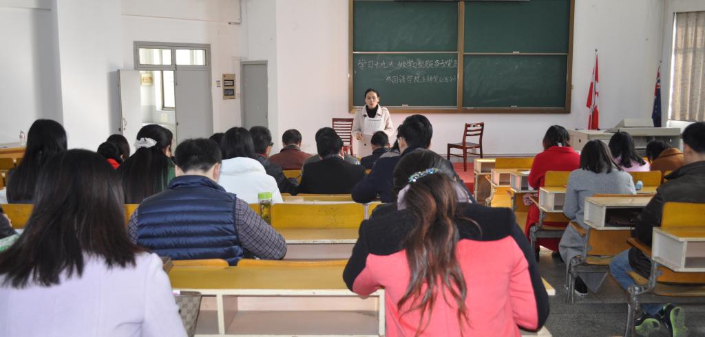11月23日下午,外国语学院教工联合支部在外语楼310 召开了“学习党的十九大,做学习型和服务型党员”为主题的党日活动,全体党员教职工参加了这次活动。