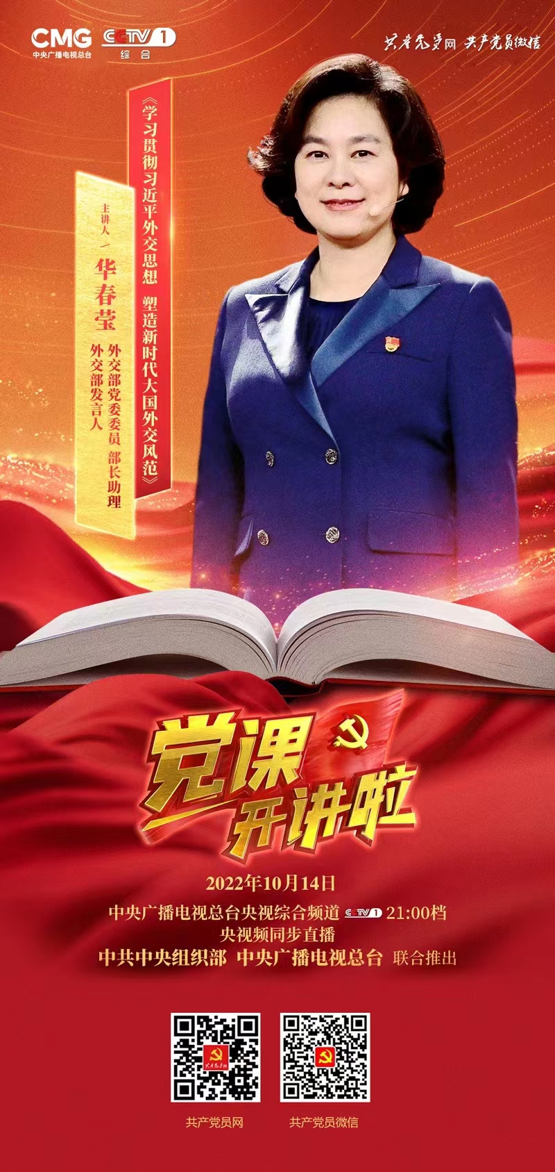 2022年10月14日,外国语学院党委组织全体教师观看了《党课开讲啦》特别节目,这期节目是由中共中央组织部和中央广播电视总台联合推出的,邀请了外交部发言人华春莹担任主讲人。以习近平外交思想为主题,从“回答时代之问,彰显思想伟力”“植根人民情怀,心系天下大同”和“精彩冬奥外交,尽显大国风范”三个方面,梳理并展现了新时代中国特色大国外交的风范。如何向世界表达中国对一系列国际问题的看法,阐述中国的立场、观点和态度,捍卫国家的核心利益,逻辑严谨,恰到好处,不卑不亢,着实不易。中国如何在世界的舞台上展现出真理的力量和历史的担当,需要我们每一个人的努力,也需要我们每一个人在合适的场合正确和恰当地表达。提升中国的国际形象,让世界了解我们“守正创新、立己达人、开放包容和重情尚义”的大国外交风范。