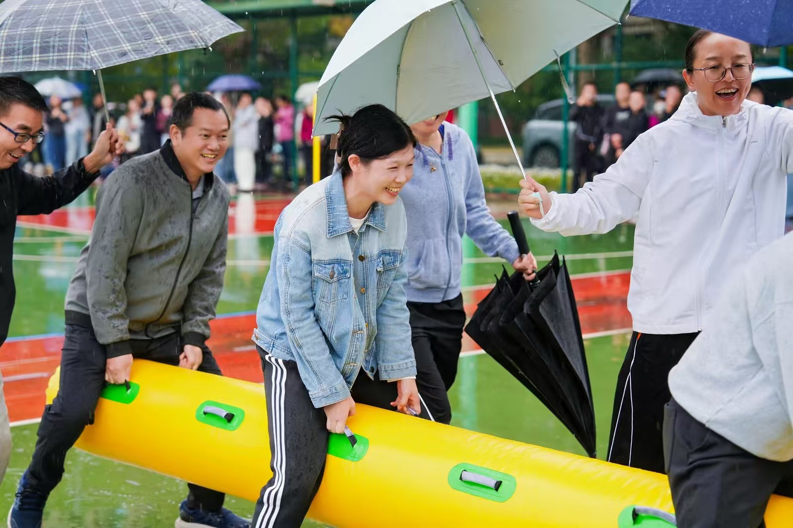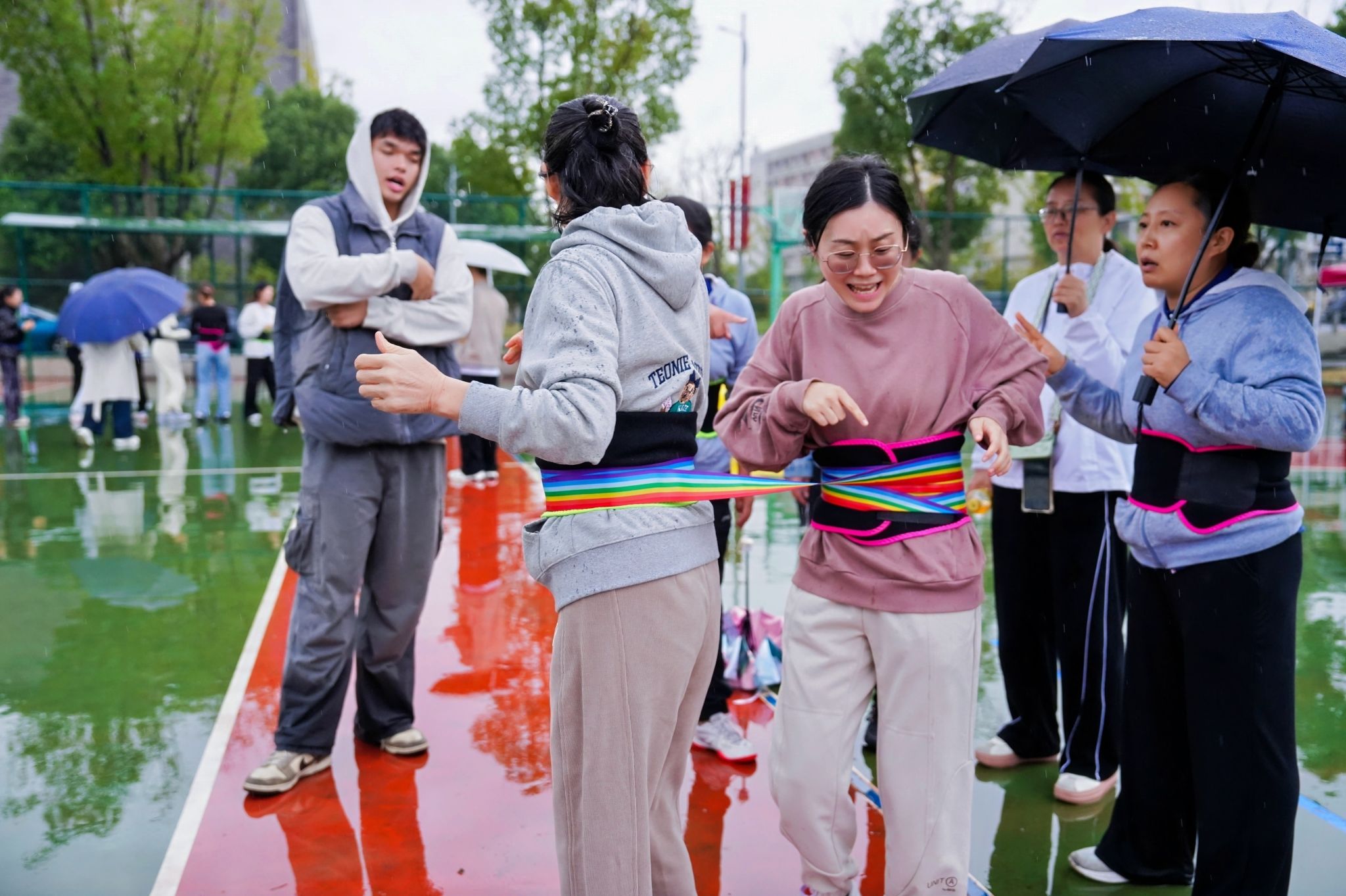 赛场上,外国语学院团队不仅点燃了拼搏的激情,更传递着团队的力量与友谊的温暖。每个项目进行时,未参赛的老师自发组成“后勤保障队”,为参赛选手打伞护航、擦干雨水;选手们成功时,大家相拥欢呼、共享喜悦;即便失利,也会互相拍肩鼓劲、总结经验。这份风雨中的守望相助,成为本次运动会上最温暖的风景线。