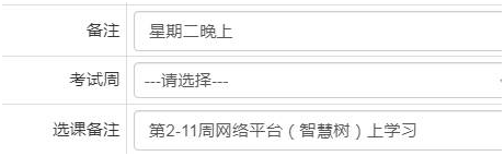 9.系统里“时间地点安排”不用输,但是提交的“公选课任务表”里请注明“星期几晚上”(周二、周三或周四)并在教务系统“备注”栏里输入(如上图)。