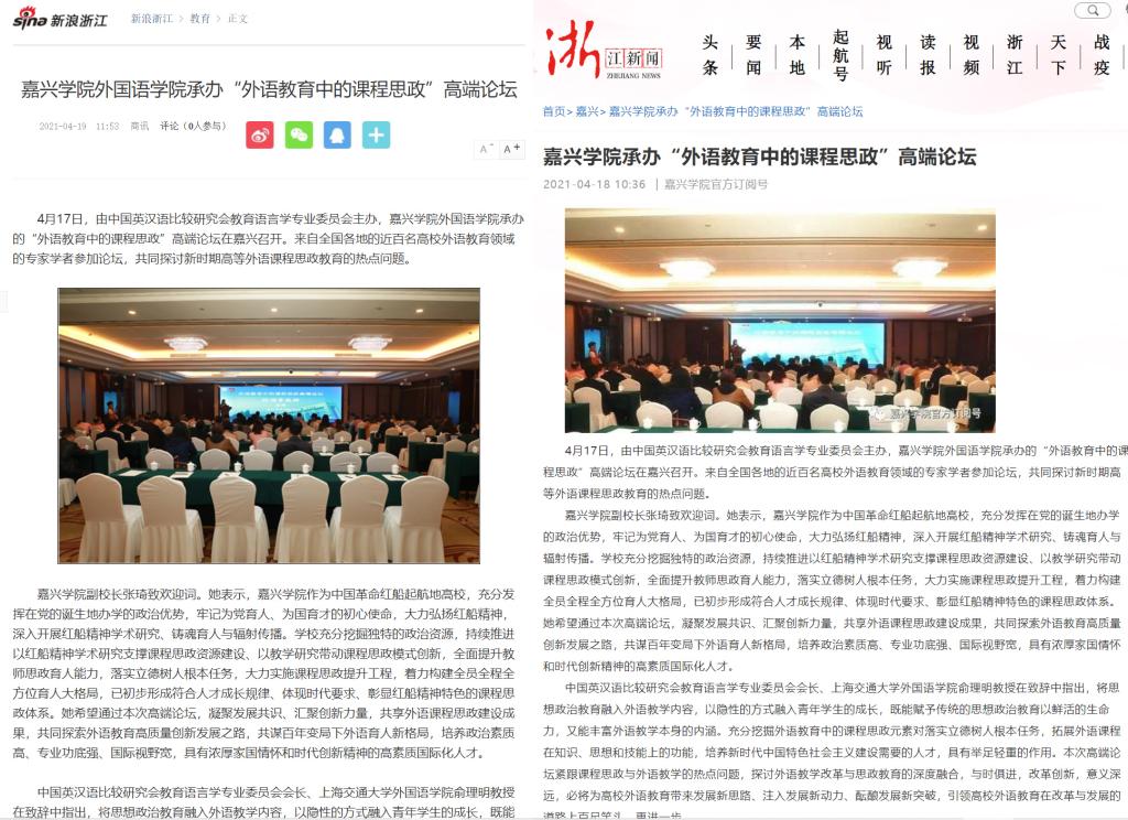 此次高端论坛受到省市级媒体的关注,新浪网、浙江乐鱼leyu(中国)客户端、嘉兴日报、读嘉、嘉兴在线、嘉兴学院报、嘉兴学院微信公众号等多家媒体对此次高端论坛进行了报道。高端论坛的传播力、影响力进一步提升。