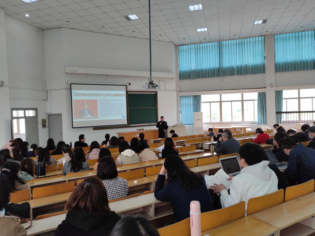 4月15日下午,外国语学院邀请嘉兴市南湖区新兴街道派出所计福荣警官在外语楼310做反诈骗专题培训。学院全体教师参加培训会,培训会由党委书记周钰主持。