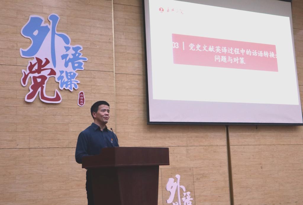 近日,我校教育部人文社科重点研究基地“中国共产党革命精神与文化资源研究中心”红色文化对外译介研究所所长、外国语学院院长唐艳芳教授应邀赴华南农业大学,为该校外国语学院300余名师生讲授了一堂题为“《中国共产党革命精神:从南湖到西柏坡》英译纵横谈”的“外语党课”。