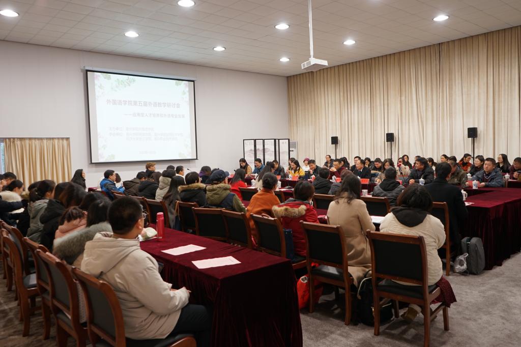 1月9日,外国语学院在第六会议室举行第五届外语教学研讨会,教务处副处长王敏、外国语学院党政领导班子成员出席会议,来自本校外国语学院、南湖学院、应用技术学院以及嘉兴市内的同济大学浙江学院外语系、嘉兴职业技术学院外语与贸易学院等高校的老师共100余人参加会议。会议由外国语学院副院长喻锋平主持。