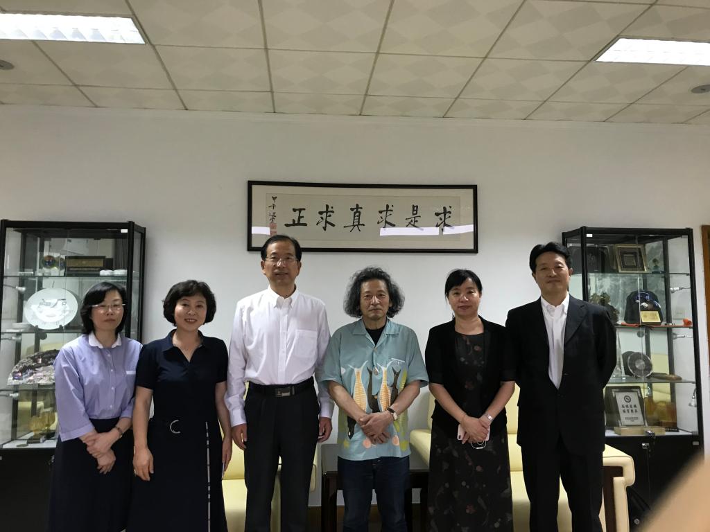 6月13日下午,一下飞机的日本二松学舍大学校长江藤茂博先生和国际交流中心木谷阳子女士一行便驱车前来我校,就推深两校合作与盛颂恩校长深入交换了意见,国际交流合作处施敏颖处长、李月顺副处长和外国语学院郭永恩副院长一同参与了交流。
