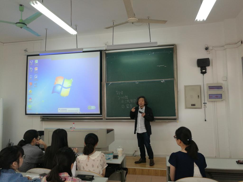 与盛校长交流后,江藤校长还拨冗与外国语学院日语专业学生见面。见面会由日语系主任刘韵超主持。在学生热烈鼓掌声中开始的见面会上,江藤校长首先介绍了二松学舍大学的历史,之后介绍了留学二松学舍大学的学科布局,最后就江藤校长自己的学科领域进行了介绍。他真诚欢迎学生们前来二松学舍大学留学,二松学舍大学也将一如既往以最大的热忱关爱和帮助同学们。