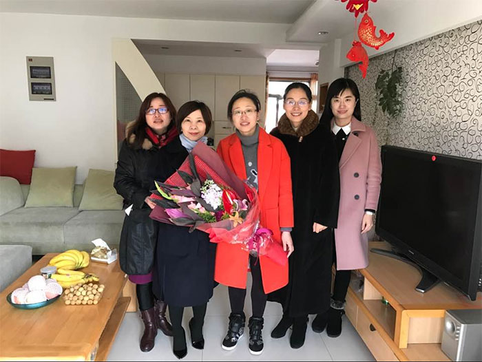 2017年1月15日周珊副校长前往我院青年教师顾敏老师家亲切慰问。学校领导正值本学期临放假之际,分头去各学院拜访慰问离退休老教师以及在教学科研战线上做出突出成绩的教师代表。 顾敏老师因教学改革成绩突出,荣获2016嘉兴学院教坛新秀称号,因此作为外院教师代表受到校领导慰问。随同前往的还有外国语学院党委书记陶丹玉、副书记周钰以及学校人事部门代表。 祝贺顾敏老师, 也希望她在新的一年在教学改革领域再接再厉,取得更好成绩!
