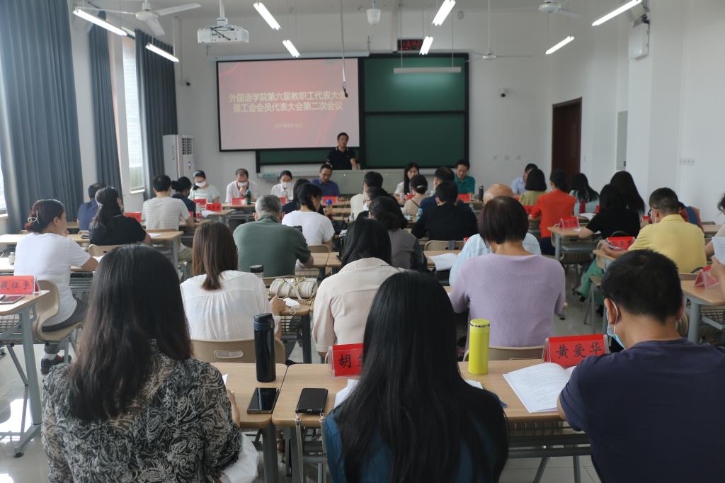 9月16日下午,外国语学院第六届教职工代表大会暨工会会员代表大会第二次会议在兴德楼南楼209召开。学院党政班子成员及教师代表共41人参加大会,大会由学院党委书记周钰主持。