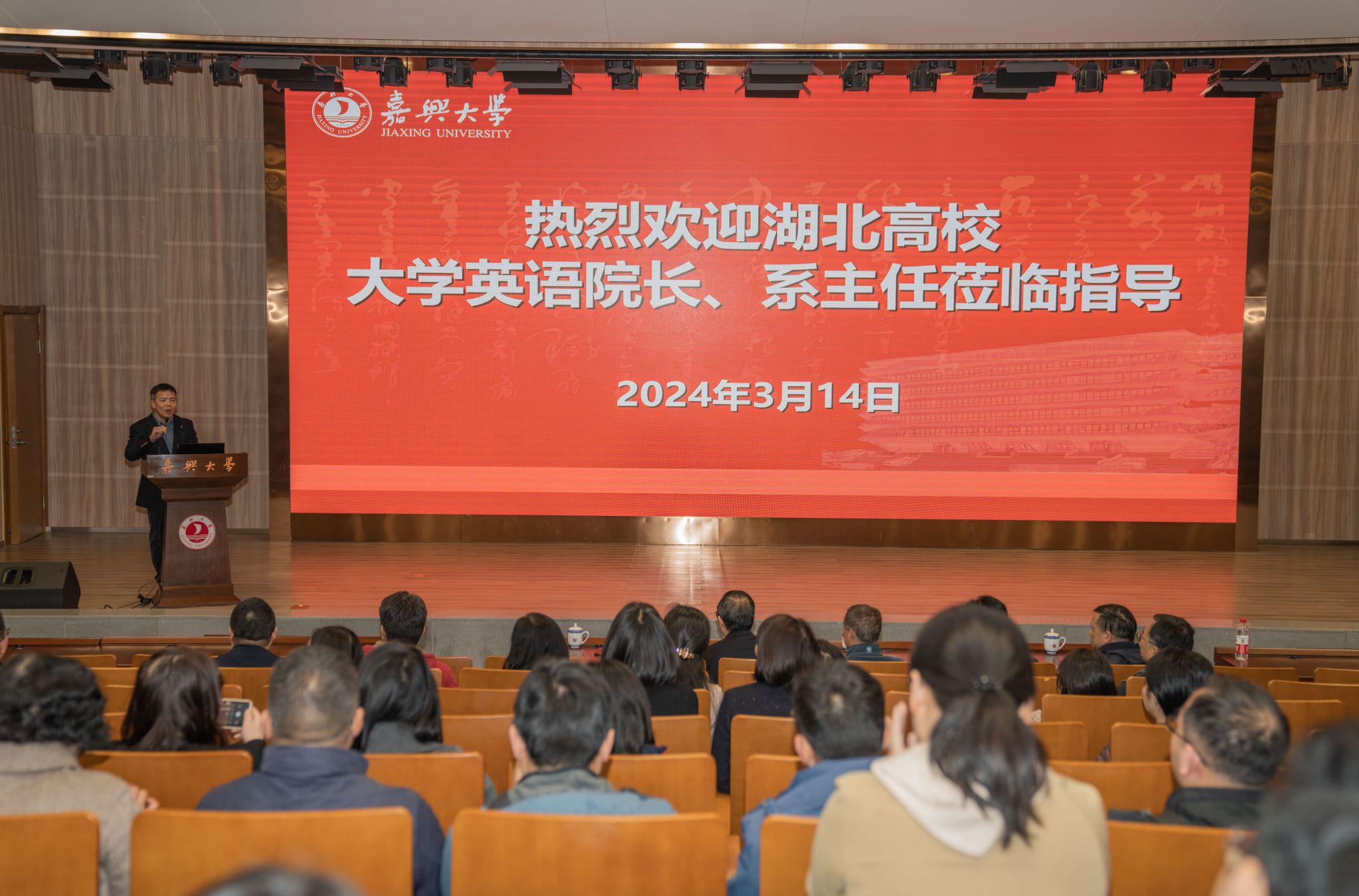 周宏伟向来自湖北49所高校的80余名大学英语院长、系主任表示欢迎,介绍了嘉兴作为中国革命红船起航地、江南文化发祥地和统筹城乡发展先行地的基本情况以及嘉兴大学的办学特色。他指出,嘉兴大学作为嘉兴市唯一的一所省属本科高校,有两个显著的办学特点。一是红船精神育人特色鲜明。学校大力弘扬伟大建党精神、红船精神,持续加强内涵建设,大力培养德才兼备的高素质应用型人才。二是应用型办学成果丰硕。学校深化产教融合、协同育人,已建成一批现代产业学院、企业学院、行业学院,培养的学生与区域社会经济发展需求匹配度高。他希望,参加本次交流会的湖北高校专家们多到嘉兴和嘉兴大学调研、交流和指导,对我校大学英语课程建设和人才培养提出宝贵建议,帮助我们更好地提高教育教学质量,培养更多具有国际视野和跨文化交际能力的优秀人才。