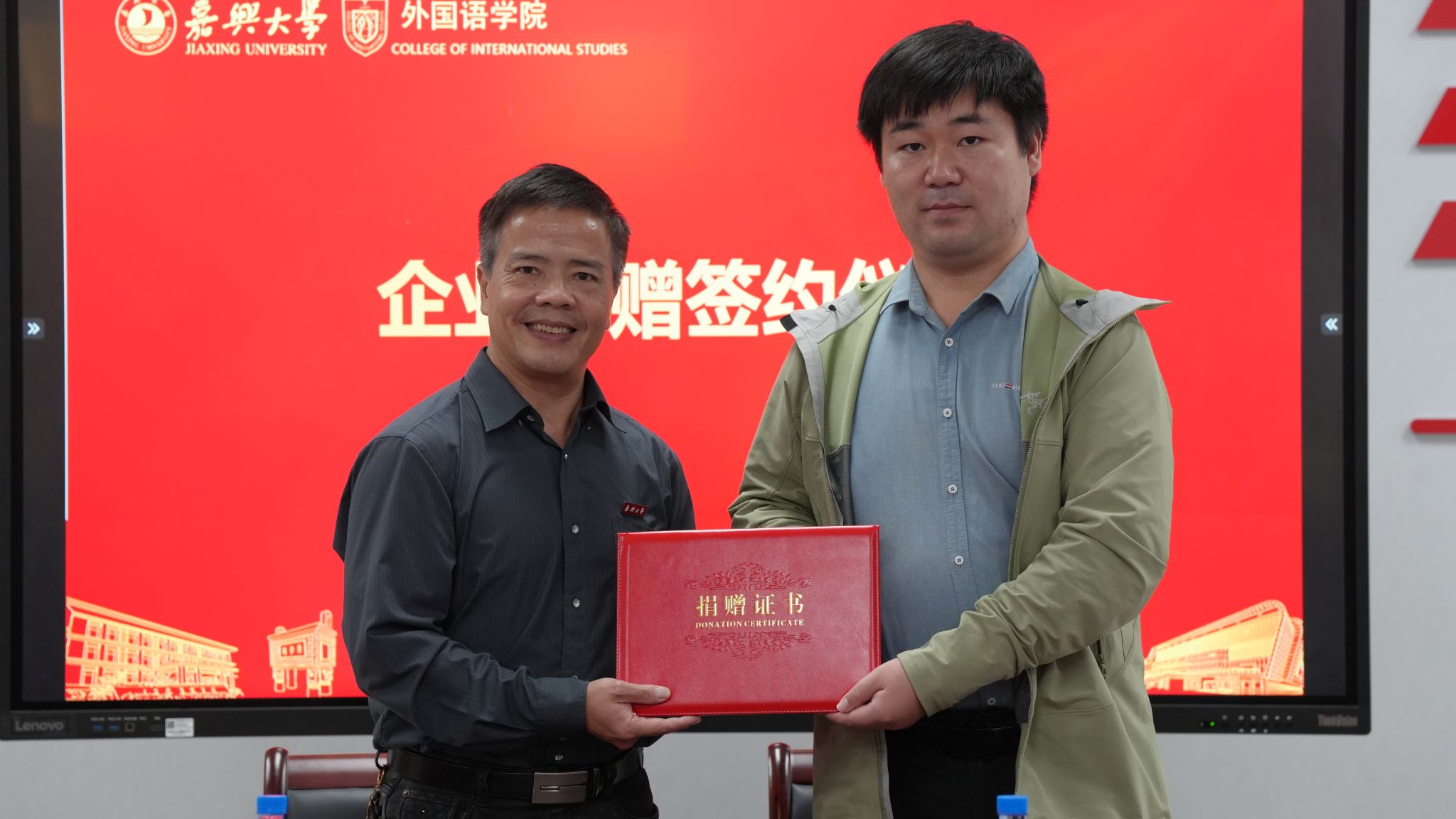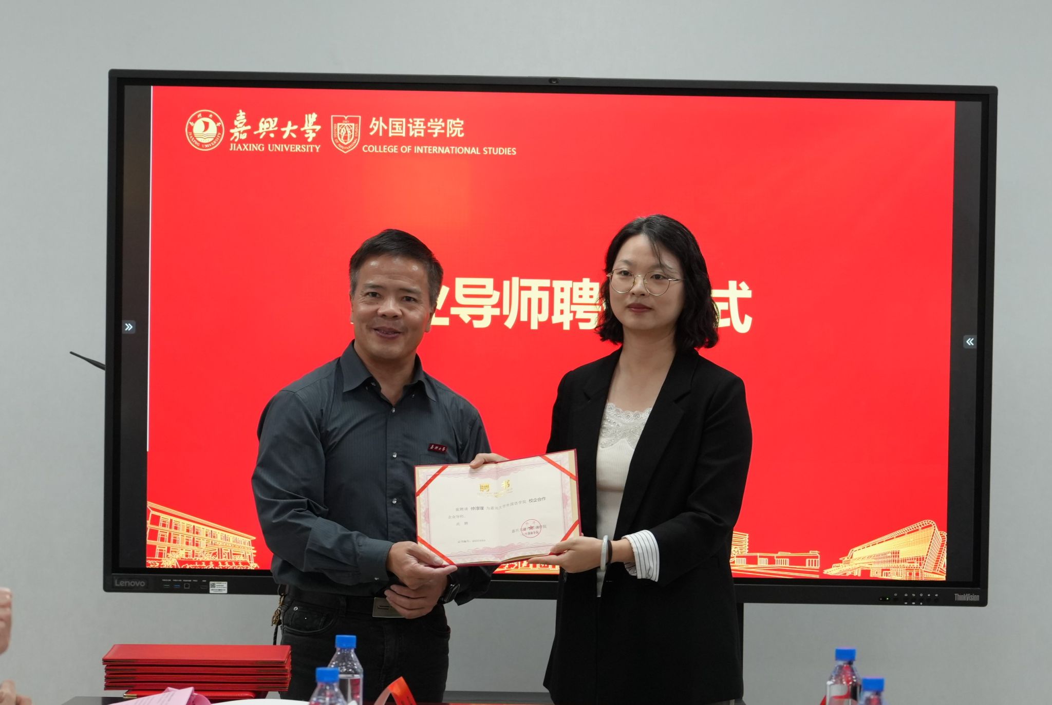 交流会后,学院还举行了企业导师聘任仪式和企业捐赠协议签约仪式。唐艳芳院长分别为浙江汇信实业股份有限公司业务经理仲淳璞女士颁发企业导师聘书,为重庆启诚教育科技有限公司创始人兼总经理冯雪林先生、上海新文道硕德教育科技有限公司华东大区经理孔春生先生颁发企业捐赠证书。