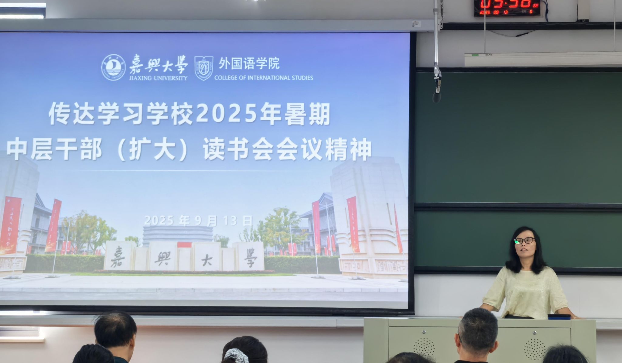 9月13日上午,外国语学院在兴德楼南楼205教室举行秋季学期全体教职工大会暨“教师开学第一课”。会议由院长唐艳芳主持,学院党政班子成员及全体教职工参加。