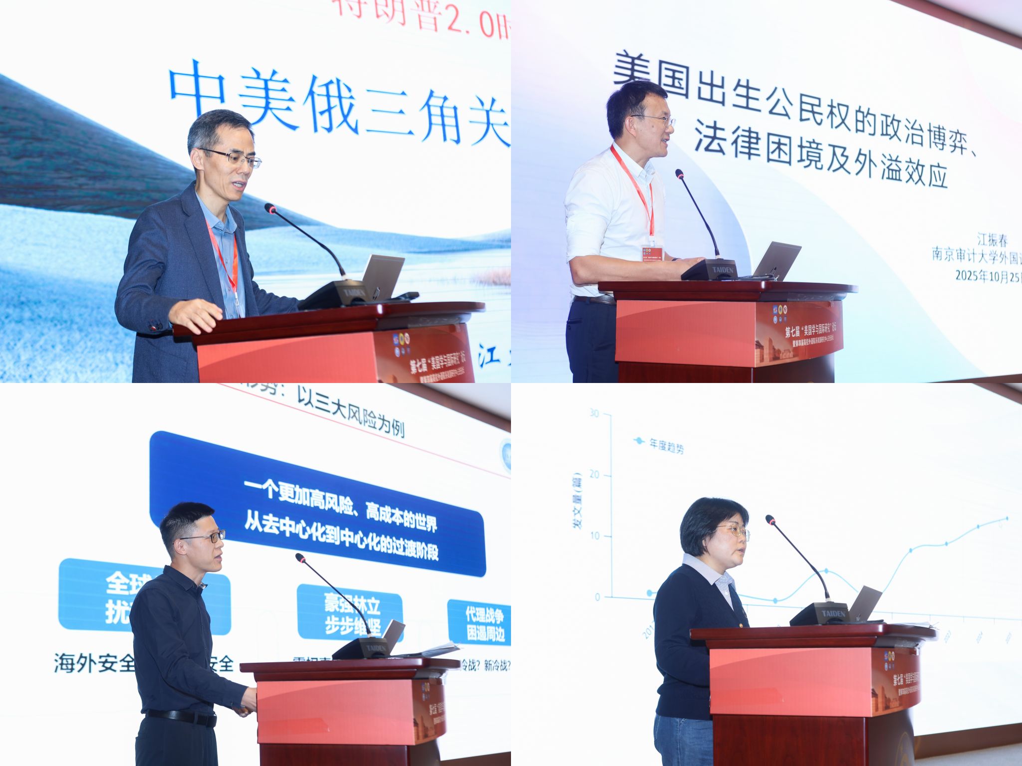 围绕“区域国别学视域下的美国研究”等主题,论坛设置12场主旨报告,邀请中国社会科学院美国研究所副所长、研究员袁征,中华人民共和国驻美国大使馆原国防武官、退役少将张力,上海财经大学外国语学院特聘教授李超民,上海外国语大学美国研究中心主任、教授林玲,华东师范大学外语学院美国研究中心主任、教授金衡山,国防科技大学外国语学院教授王萍,浙江外国语学院美国研究中心主任、教授王冲,嘉兴大学外国语学院教授肖欢,黑龙江大学外文学院(区域国别学院)执行院长、教授吴承义,南京审计大学外国语学院院长、教授江振春,中国社会科学院美国研究所社会文化室负责人、副研究员张佳俊,国防科技大学外国语学院副教授李静作主旨报告。