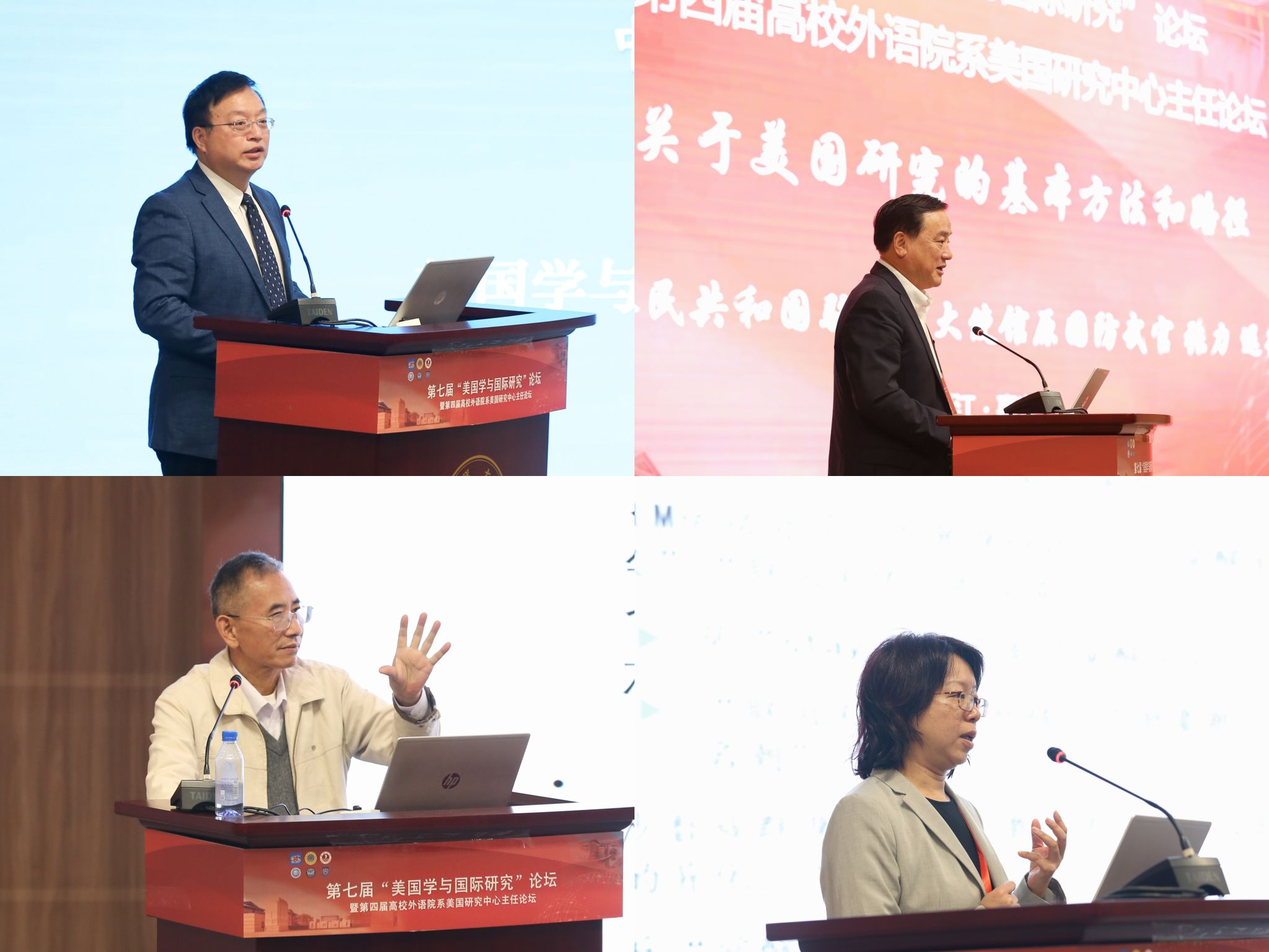 论坛还开设第四届高校外语院系美国研究中心主任论坛,由西南交通大学外国语学院美国研究中心主任李庆成副教授、北京外国语大学美国研究中心主任陈崛斌副教授、国防科技大学外国语学院美国研究中心主任王波教授分别作专题发言。
